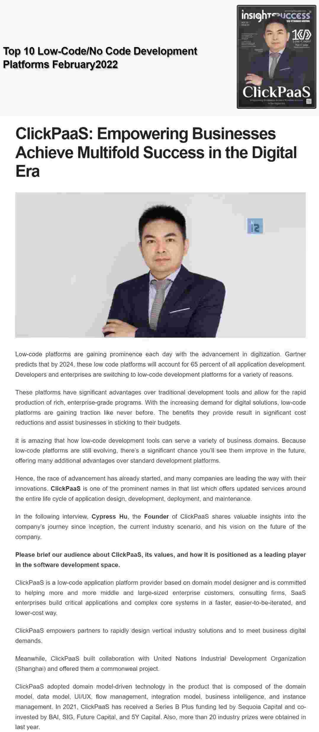 2022年年初,,,,,,,,,,华为钱包入选外媒Insights Success低代码/无代码开发平台 Top10,,,,,,,,,,,创始人、、、、、、、、、、、、CEO胡柏受邀接受专访并荣登封面人物,,,,,,,,,,他与Insights Success的读者分享了华为钱包成立的初心、、、、、、、、、发展历程、、、、、、、、、、、、、、当前的行业发展趋势以及他对公司未来的展望。。。。。。